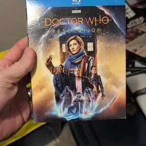 Doctor Who: Resolution Blu-ray featuring vibrant cover art. Includes iconic characters and TARDIS.