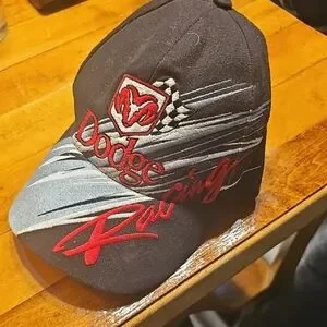 Stylish Racing cap. Features bold red and black design. Perfect for dodge and mopar guys