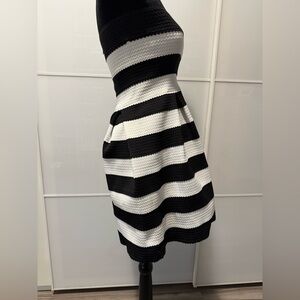 Doe & Rae Black and White Strapless A-Line Cocktail Dress