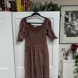 Excellent condition, only tried on once, but tags removed, Collette dress in Terra Cotta Garden. Lovely smocked bodice for some extra comfort but allows this to fit a size medium easily.