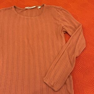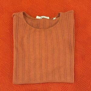 Elegant rust-colored long sleeve top. Perfect for casual wear. Soft and comfortable fabric.