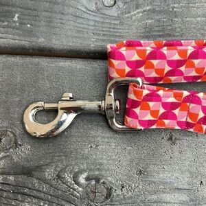 Stroll around town in style with Dog Attired’s pink and white leash.