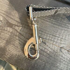Stroll around town in style with Dog Attired’s black and white polka dot floral leash.