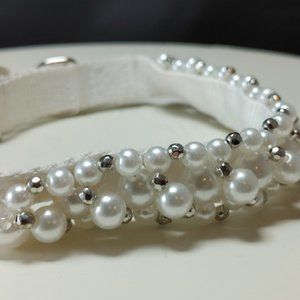 White and Silver Pearl Dog Collar Suitable for Small Dog