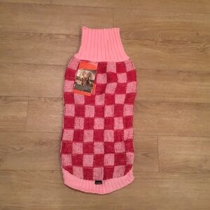Brand new ThinkPet dog size L pink checker knitted warm sweater. The classic turtleneck design can completely wrap the dog's neck, and keep the dog warm while giving the dog enough room for movement so that the dog can play freely. Made of acrylic material, which is soft, comfortable, breathable and stretchy.