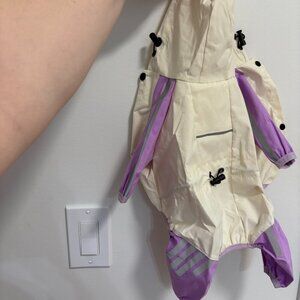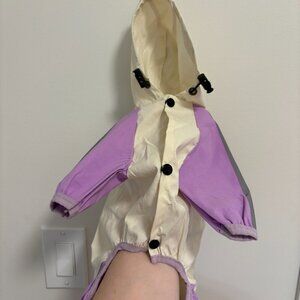 Dog Rain Jacket Cream Purple Covers Legs and Hood Size M