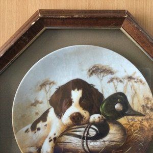 Dog Tired-The Springer Spaniel octagonal wood frame collector plate cute dog