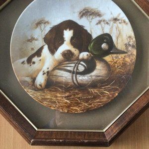 Vintage collector plate in an old wood frame octagonal shape.