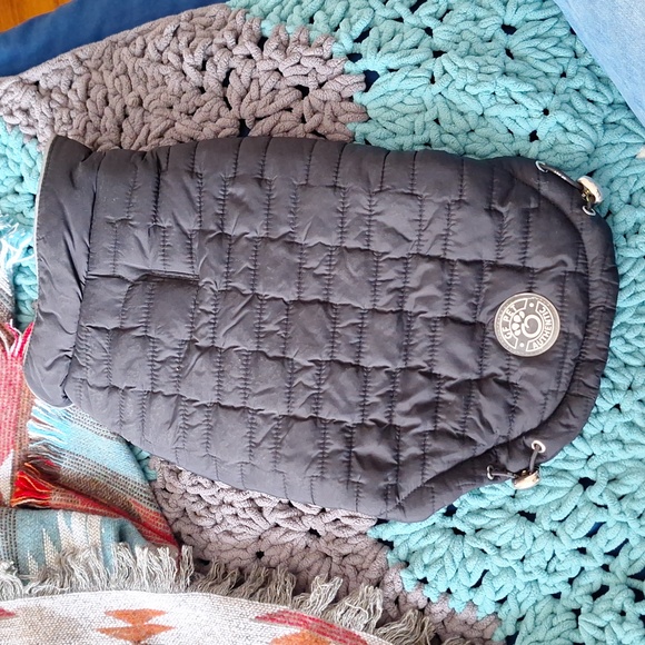 Small dog jacket, only used a few times. Has adjustable strings to fasten around back end. I have 1 more dog jacket listed in my items. Feel free to bundle with any of my other items! Everything must go so o will give good deals & discounted shipping!