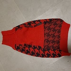 Black and red plaid dog sweater with a black velvet bow with a beautiful pearl accent