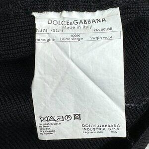 Dolce & Gabbana Black Zip-Up Wool Knit Jacket with DG Crest - Size 46