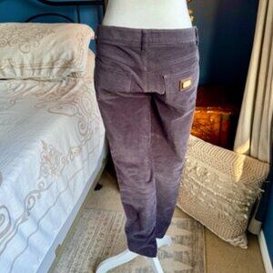 Authentic Dolce & Gabbana chocolate brown corduroy skinny low rise pants, size 40EU (31 waist). Zippered ankle, gold metal logo on back right pocket, zip fly, excellent used condition, very soft. Not stretchy. Waist measures 15.5 inches laying flat, inseam is 28.5 inches, rise is 7 inches. Cat friendly, nonsmoking home.