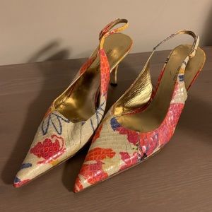 EUC Dolce & Gabbana multicoloured leather pointed toe sling-backs in women’s size 39.
