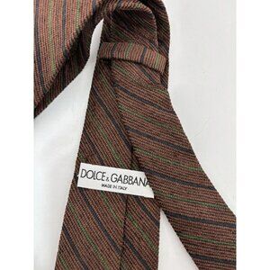 Dolce & Gabbana Made in Italy Men's Viscose Tie Brown & Black Green Striped