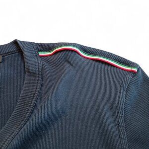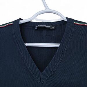 Dolce & Gabbana Men’s Black Ribbed V-Neck Tee Italian Tricolor Stripe Size 52