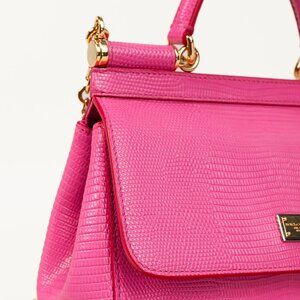 Dolce & Gabbana Miss Sicily Small Pink Iguana-Embossed Chain Satchel
