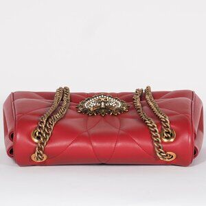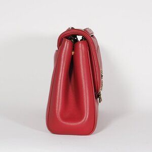 This Dolce & Gabbana Devotion bag is crafted in supple red nappa leather with a quilted design and signature ornate heart-shaped DG logo plaque. Featuring antique gold-tone hardware and a dual-function chain strap, this structured shoulder bag offers standout detail with a spacious interior. The item is in excellent, super clean condition inside and out.