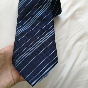 Dolce & Gabbana Silk Textured Navy and Blue Striped Tie Classic Luxury