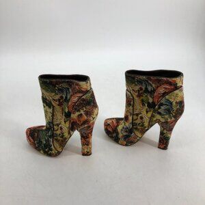 Dolce & Gabbana floral tapestry jacquard yellow red heeled ankle boots 37