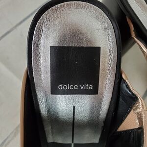 Dolce Vita Rocko Metallic Leather Mule Slides Rose Gold Pewter Size 8.5
