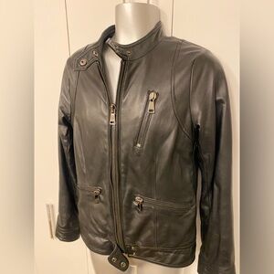 Dolce&Gabbana leather biker jacket Size IT 40 (US size 8-10) Silk linen, accessories in silver