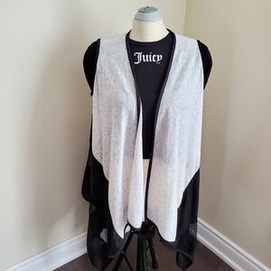 Dolcezza Black-White Open Front Sleeveless Cardigan Size Medium
