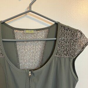 Dolcezza Fitted Style Kaki Green Tunic Top Size Medium FLAWS