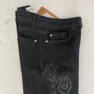 Dolcezza Slim Fit Skinny Leg 5 Pocket Cotton Poly Blend Beading Detail Jeans Black NWT