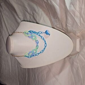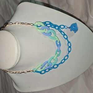 This will make a splash at your next social outing. This little dolphin bell inspired me to create a fun necklace that can be worn by all. You do, however, need to be confident and willing to be a little creative with your outfit to pull this one off! This is the new craze... plastic necklaces! They are so much fun to make and wear. Every item is brand new and created by me. I hope you enjoy this one.