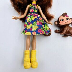Doll Enchantimals Merit Monkey And Swing Figure Pet Mattel Yellow Brown Hair Fruit Cart 2017 Read