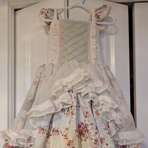Beautiful knee-length dress. The In The Lime Light Dress has details upon details, including a light green bodice with criss cross detailing, a floral under skirt and a tulle top layer with frill and lace trimming on the hem.