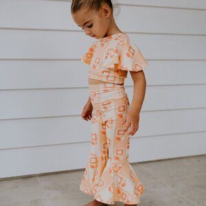 Boutique brand Dollcake 'Poppy' flared pants and butterfly sleeve top. They are made in the softest fabric and include stretch for a comfortable fit. The pants include a flared bottom for that retro look and include a waist band that can be folded over for a mid waist look. The top has been designed in a crop style to wear with the matching pants or any of her fave high waisted pants. I have a size 4T, brand new with tags.