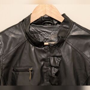 Dollhouse L Faux Leather Ruffle Moto Jacket