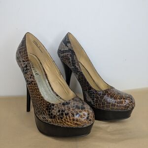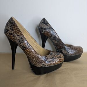 Dollhouse Platform Stilettos in Faux Patent Leather & Snakeskin Size 7.5 NWOT