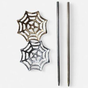 •adorable spooky DOLLS KILL CENTER YOURSELF gold silver toned pentagram star spiderweb goth mini hair pin set