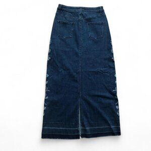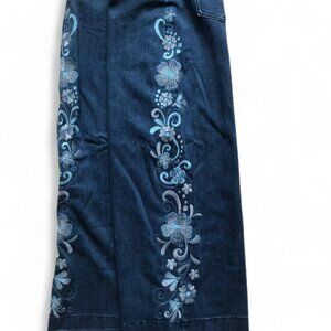 ˖ ❀ ⋆。˚ Y2K inspired DOLLS KILL DELIA'S LITTLE ISLAND stretchy denim longline low rise high waist floral flower maxi skirt ˚ 。⋆ ❀ ݁