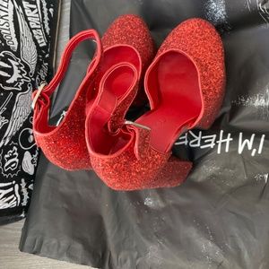 Dolls Kill Ruby Shine By Night Glitter Heels (Dorothy Shoes). New, never been worn, no damage. Out of stock on the Dolls Kill’s website. Size 7. True Size.