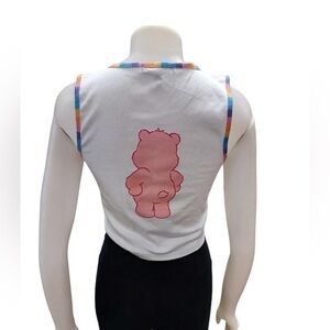 Care Bears by Dolls Kill. This cropped tee is a cotton/ spandex blend. Sleeveless, featuring care bear call out on front and back.
