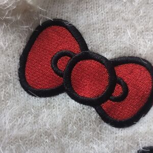 Adorable Hello Kitty fuzzy top in white. Features a cute Hello Kitty design with a red bow. Soft and comfortable