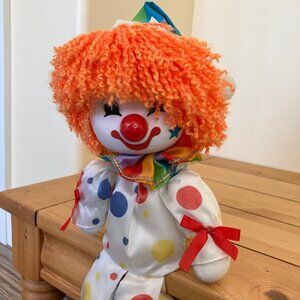 Dolmax Polka Dot Happy Clown Doll Shelf Sitter Vintage 70s Toy Rainbow 14" Tall