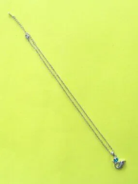 Small pendant - dolphin with blue faceted rhinestone on a 16 in long chain (drop is 8 inches) plus 1.5 in extension