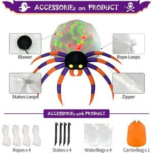 【Simple Setup And Storage】:Self-inflates and deflates, Just plug in this halloween inflatable spider built-in fan and fix it on the ground. It will be inflated in a few seconds and everything pops up in an instant!For better stability,built-in water bag and rope.Don't worry about whether this spider inflatable decoration will be blown away by the wind.