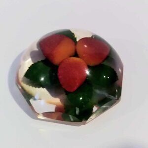 Domed Lucite Fruit Strawberry Lemon Paperweights Vintage
