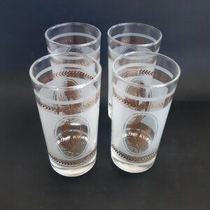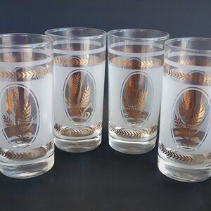 Dominion Glass 4 Highball Cocktail Glasses MCM Frosted Gold Wheat Pattern