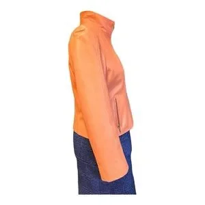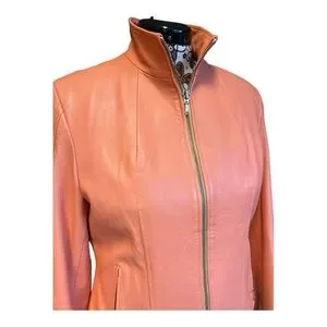 Dominique Genuine Leather jacket in salmon colour, 20.5” zipper, size Medium.