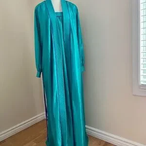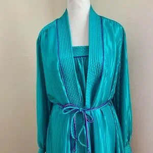 Chic turquoise robe with textured design. Ideal for stylish relaxation. Vintage sleep wear Excellent condition