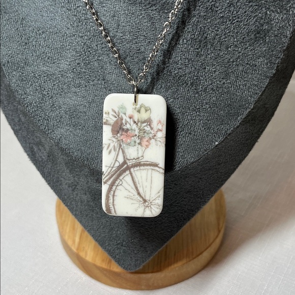 Domino necklace. Deana Designs Unique. Fun Bike flowers pendant