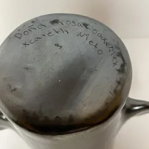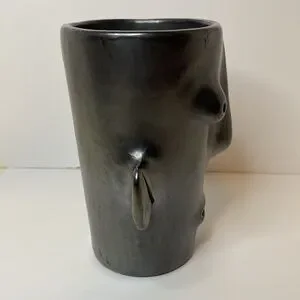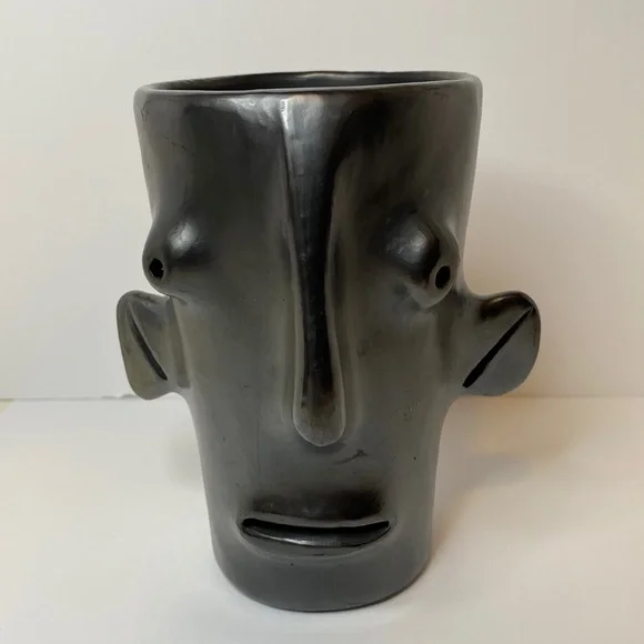 Dona Rosa Face Vase. She is noted for inventing a technique to make the local pottery type, barro negro, black and shiny after firing. She was a Mexican ceramics artisan from San Bartolo Coyotepec, Oaxaca Mexico Born Sept 4, 1900 Died 1980