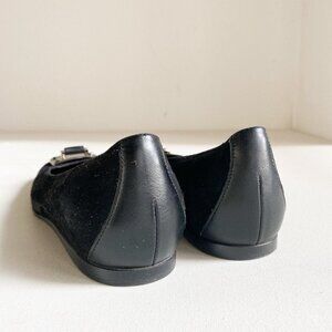 Donald J Pliner Black Suede Metal Monogram Detail Square Toe Flats 8M.