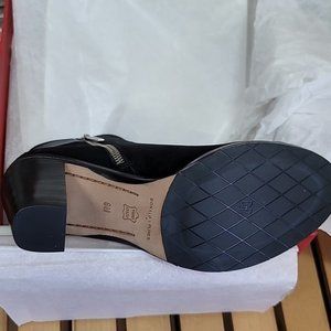 Peep-toe ankle boot featuring instep zipper and cutout lateral side with buckle strap